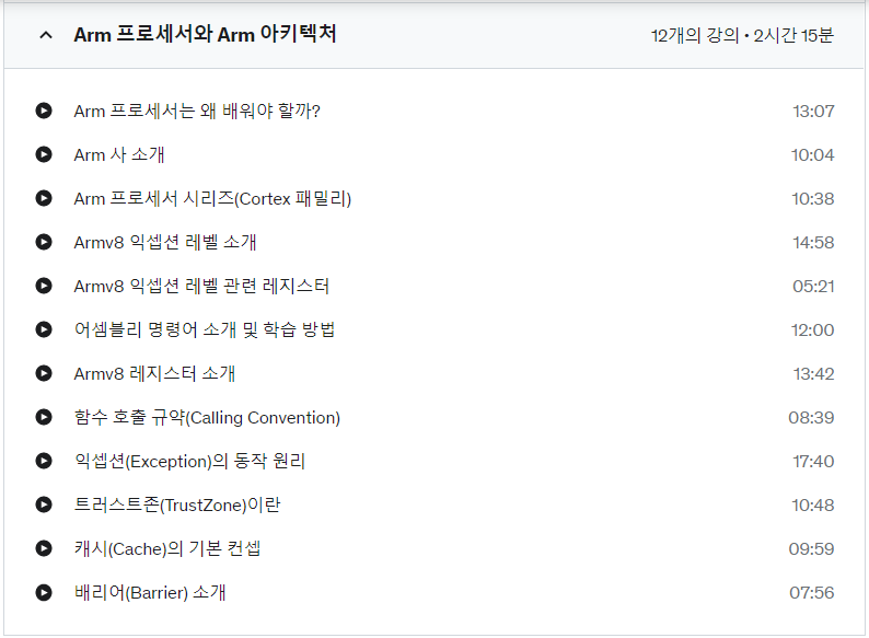 클래스의 내용을 보시면 아시겠지만 리눅스 커널이나 Arm 아키텍처에 대한 소개와 컨셉 그리고 실전 프로젝트에서 활용이 될만한 실용적인 내용을 잘 정리했습니다.